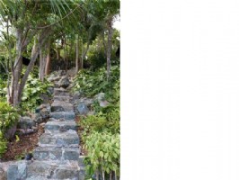 One of Stonegate's Many Stone Pathways Boarded by Lush Vegatation