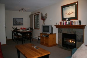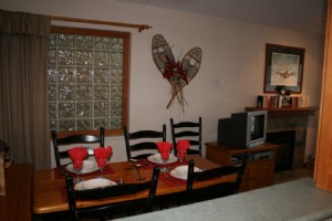 Living and dining area with fireplace for ambience