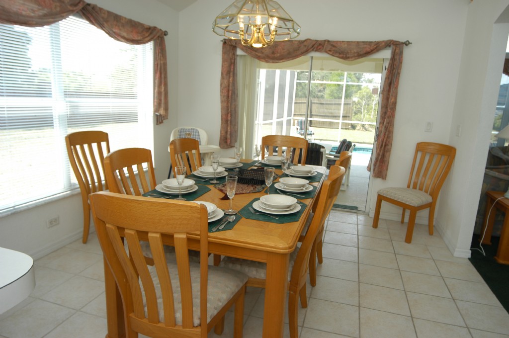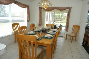 There is a separate dining area which seats 8 adults in comfort and overlooks the pool.