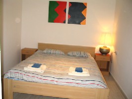 The place is modern, yet cosy, and fully equipped. There are two bedrooms (one twin and one double) and two bathrooms. Spacious living room is furnished with two sofa-beds, and a dining table for six people. There is an American style kitchenette.