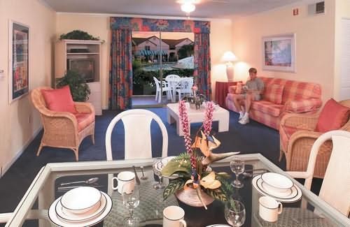 At Blue Tree Resort at Lake Buena Vista. Deluxe 2 bedroom unit, which includes a hot tub and washer-dryer in the room. Two TVs, 2 baths, full living room, dining room, kitchen (fully equipped). Four pools and children activities at this resort. Tennis courts. Dozens of restaurants within a mile. Post Office 1/2 block.