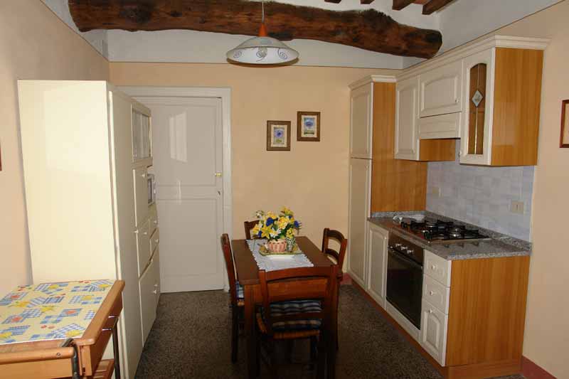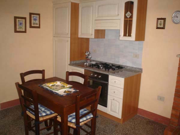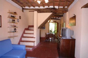 Well-cared furnishings in country style, terracotta tiled floors, beamed ceilings and walls painted in pastel colours. Parking close to the house.