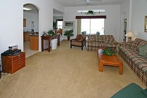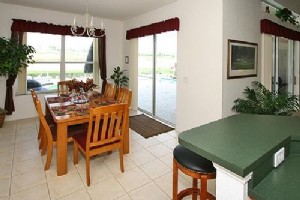 Villa in Davenport Disney Area, Florida: Games Room: Electronic Basketball, Foosball, Air Hockey, Pool Table, Table Tennis, Darts. Casino Table: Roulette, Craps, Black Jack, Poker, DVD library of films & a Playstation2 w games. FREE! High Speed Internet access & FREE! International telephone. This exquisite villa is one of the premier homes on the prestigious Highlands Reserve Golf and Country Club Estate and is within short distance of the clubhouse. With shops, restaurants and attractions only a short drive away it provides the perfect holiday retreat after an exciting day out. With the award winning championship golf course this spacious home offers many attractions of its own. It’s soothing, relaxing designer spec.has the wow factor! A home with everything provided to make your stay a memorable one, plus a queen size sofa bed, Portable Crib, Highchair, Stroller and Floor Safe are provided. Relax in the shaded lanai overlooking the golf course, have a BBQ, or take a dip in the pool.