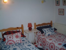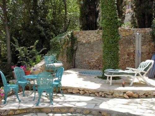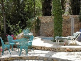 Painted peach with red shutters, the house is set in a walled garden overlooking the valley towards Aups. The house and gardens are totally private and just two minutes walk to the centre of Moissac. The house is at least 200 years old, and has thick walls, old beams and traditional tiled floors. Carefully renovated and decorated in traditional Mediterranean-bright colours, the house is a spacious comfortable base for a holiday in the heart of the Parc Naturel du Verdon. The house is on three floors, and it is the ground floor apartment that is for rental. This apartment has two bedrooms, but for a party of six people, there is a further bedroom and ensuite shower room and toilet available.