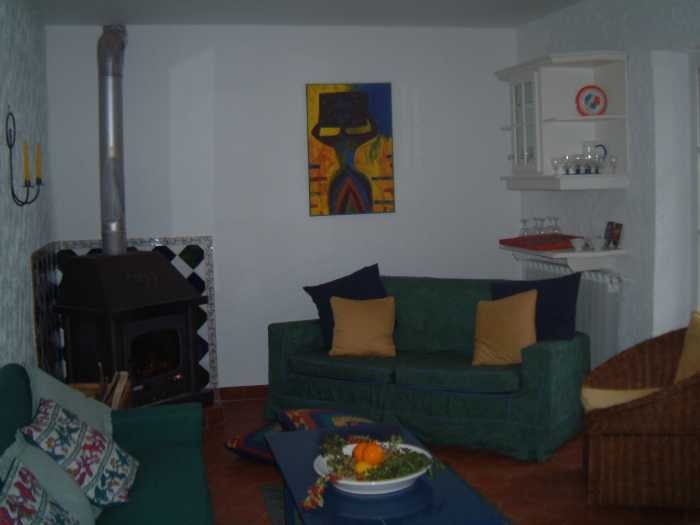 Living/dining room: Dining for up to 8 people and plenty of comfortable seating with sofa and easy chairs, coffee table, and large wood burner, TV and French satellite system. The room is light and airy and opens directly on to the balcony with access to the garden.