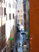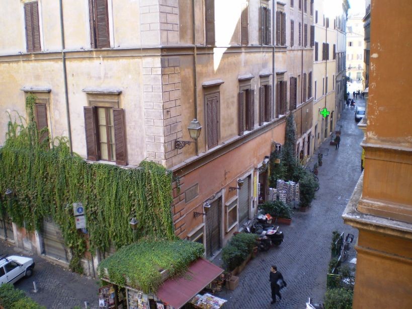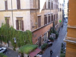 aroma of fresh pizza baking in the forno at “La Foccacia”, reputedly the best in Rome; wake to the sounds of the locals preparing for their day: Gianni at the corner newspaper kiosk selling newspapers from the World over; Fabbio at the Alimentari (grocery store) who will keep you in everything from soap to bread to toothpaste to cheese to wine; the butcher, the baker, yes, even the candle-stick maker are here. Via dei Coronari, famous for its antique stores is a short walk away, as are some of the most glorious paintings of Caravaggio in the churches of San Luigi in Francesi and Sant’Agostino.Walk to Campo dei Fiori in the early morning to buy hot, fresh bread at the oldest bakery in Rome, “il Forno” and buy fresh fruits and vegetables, coffee pots and T shirts at the colorful stalls, while the brooding statue of the ill-fated martyr, Giordano Bruno looks on. If, during your stay, you never strayed from this neighborhood, you would still leave with an indelible impression of Rome, its people, its mercurial past and its lively present.