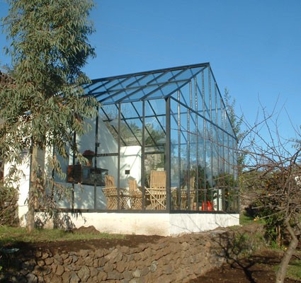 It rises on top of a 3-acre fruit park with trees bearing organic fruit all year round ripening on the naturally fertilized volcanic soil.