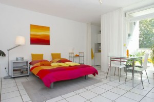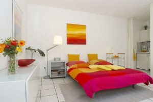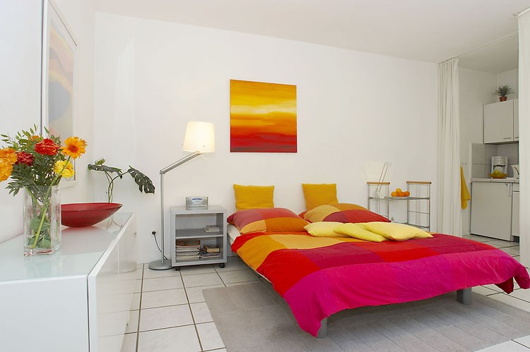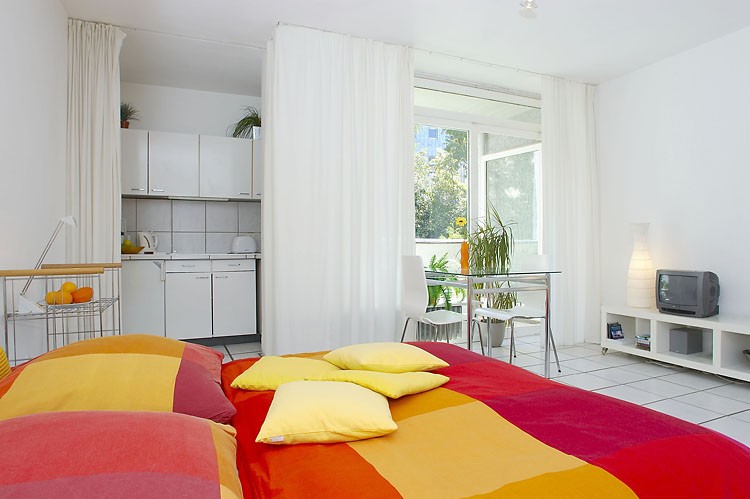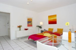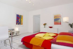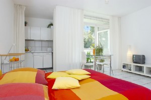 1-room apartment (34 sqm) with friendly living-/sleeping area and american kitchen. Kabel-TV, Midi–set, generous space for luggage and clothing. A comfortable extendable sleep couch (150 x 200) including sufficient bed-clothes and towels. Own car park .