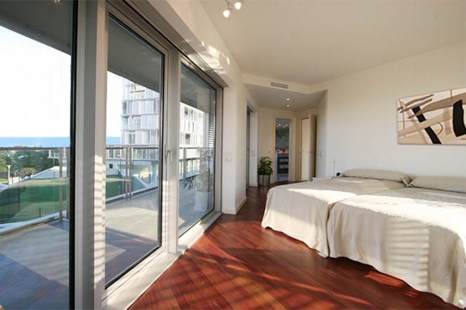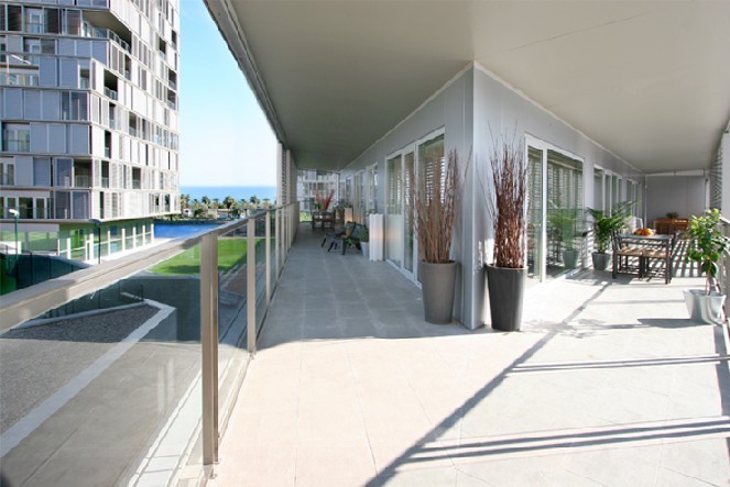 Exclusive, brand-new, sunny, luxury apartment (135m2) surrounded by an enormous park, right beside the city beach! Located in Diagonal Mar area. Enjoy wonderful views of the beach and park from this stylish and modern new apartment. Every room overlooks the city/sea and connects to a private terrace (120m2) accessible throughout the whole apartment.