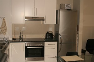 The apartment is fully furnished (including linen & towels). Fully equipped kitchen with a washing machine and dryer, dishwasher,and microwave. The lounge is equiped with a flat screen TV and DSTV.