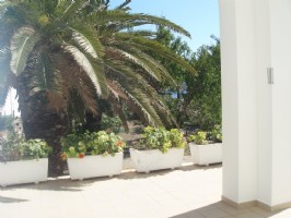 The house is in the middle of a very big garden with palm trees, fig trees, other trees and flowers.