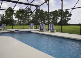 3 master rooms all king size beds, each having en-suite and walk-in wardrobes. 3 rooms with twin beds, 1 en-suite. Living room, dining room, family room, fully fitted an equipped kitchen, utility room, cable TV, DVD, computer, games room. Fully air conditioned, with additional ceiling fans. Towels and bed linen provided. Private screened north facing 14.5 x 30 heated swimming pool with spa, extended deck, luxury pool furniture, large shaded lanai with ceiling fans.