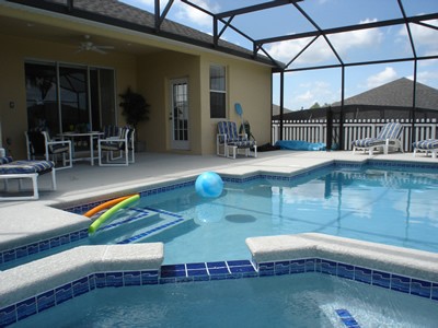 Our Luxury Villa's have four bedrooms and three baths, Two Master suits both with en-suites baths also two twin bedded rooms one Disney themed, with Play Station 2 + games. Out side there is a large swimming Pool with a Jacuzzi with a 40ft deck which allows you to sunbath all day.