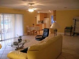 This 2400sq. ft. home has been completely remodeled with all tile floors, and comes fully furnished. The enormous great room is in continuity with the dining area and kitchen. (We often move the furniture aside and play ping-pong) There are three bedrooms, and two full bathrooms and a 2 plus car garage. Laundry facilities are provided with a full washer and dryer in the utility room.
