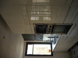 The kitchen is equipped with a refrigerator & freezer, a dishwasher, a vitro-ceramic burner with oven, a microwave, and a toaster.