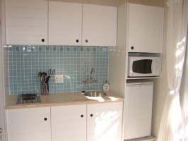 The Design Studio is a bachelor apartment with fresh “beach-style” décor, offers king bed (sleeps 2) percale linen with en-suite shower. Kitchenette. Wifi. SATV
