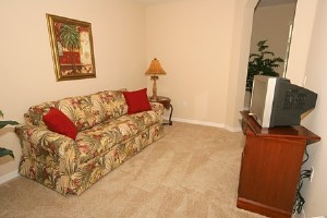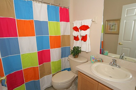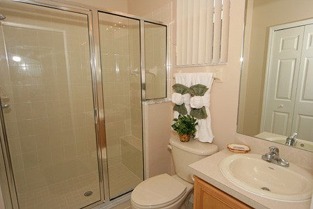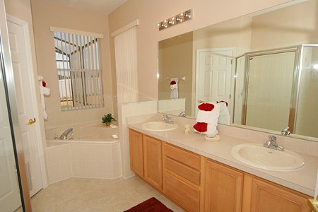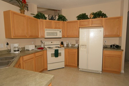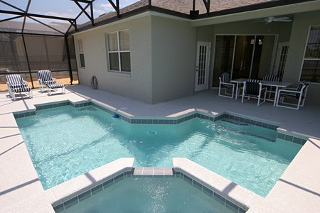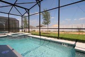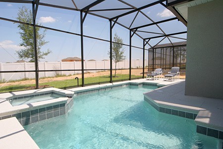 The pool and jacuzzi is fully screened and can be lit at night. All sun loungers, tables and chairs, plus pool toys are provided. The extended decking area is a great place to spend a lazy day or to unwind and relax in the evening after a busy day at the parks. Part of the decking area is covered and has a ceiling fan to keep you cool. A child safety fence surrounds the pool for peace of mind.