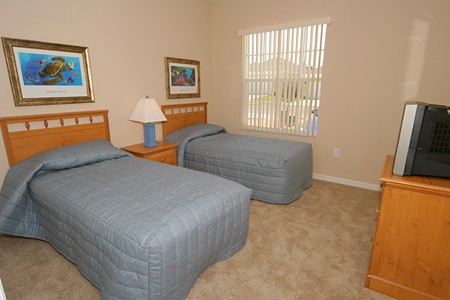 One master bedroom has a king sized bed with ceiling fan and the other has a queen sized bed, both have ensuite bathrooms and tv and hair dryers. The two twin bedded rooms share a bathroom and they also have tv's.
