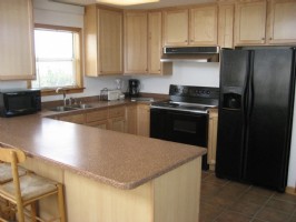 Ground Level: Game room w/ 32" widescreen TV/VCR/DVD, pool table, kitchenette w/ full size refrigerator, microwave, toaster oven, half bath, double laundry.