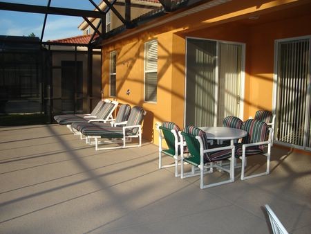 Our spacious, screened lanai provides Florida living at its finest. This fabulous south-facing outdoor living space overlooks WaterSong’s private lake and is the perfect way to relax after a long day at the parks. Large screened area offers respite from the sun.