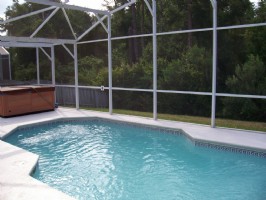 Private Pool Fully Enclosed by Privacy Fence with Woodland to Rear
