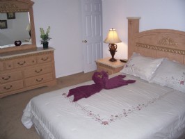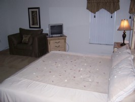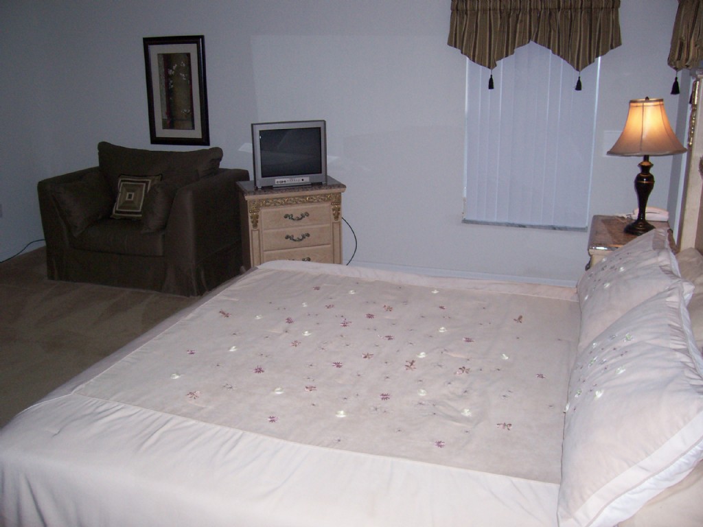 Large Master En-Suite Bedroom - with Deep Roman Bath, Double Vanity Unit and Oversized Walk in Closet (big enough for another bedroom!) This Bedroom features a Larger TV, Two Armchairs and Sumptuous Bedding for that Extra Sense of Style