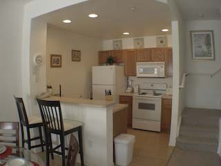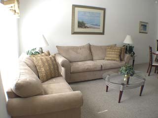 Large three bedroom unit with all the comforts of home. Beautifully decorated by the owners, their home away from home includes window treatments, wall paper and decorations throughout. The flat screen TV in the living room also has a DVD player with “Family Friendly” movies and a Play station with games. The first floor Master Bedroom boasts a King size bed, flat screen TV and private bath with large Whirlpool tub. The upstairs Jr. Master Bedroom is furnished with a Queen Size bed, flat screen TV and a large private bath. A third features 2 twin beds and TV’s with build in DVD players. Ample space for a large family yet cozy and comfortable, like home. Fully furnished kitchen and laundry facilities on the first floor. Parking directly in front of home and a short walk to Clubhouse, Pool, Lake and amenities.