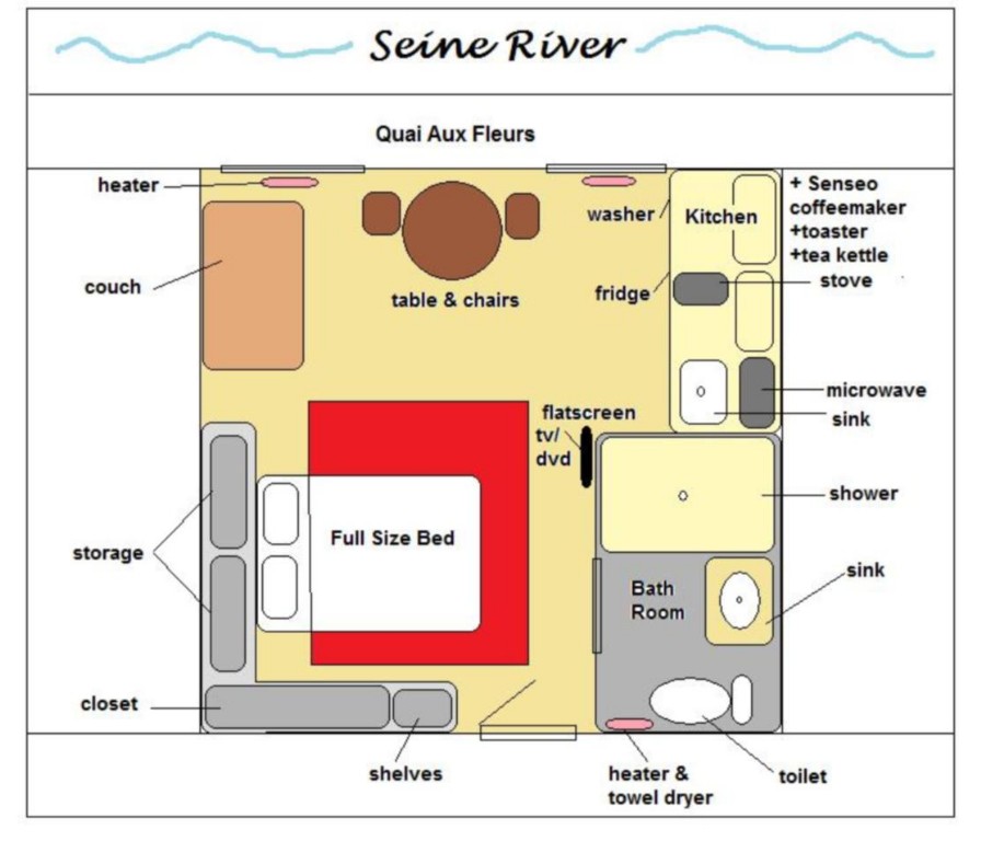 The Notre Dame Cathedral is just steps from your door; The Hotel de Ville is just across the bridge; St. Michel, the Place des Vosges, the Marais, and the Latin Quarter are just a 5 min. walk away ! The stunning Eiffel Tower is just a stroll away by foot down the river or by one of Paris' famous fly boats.