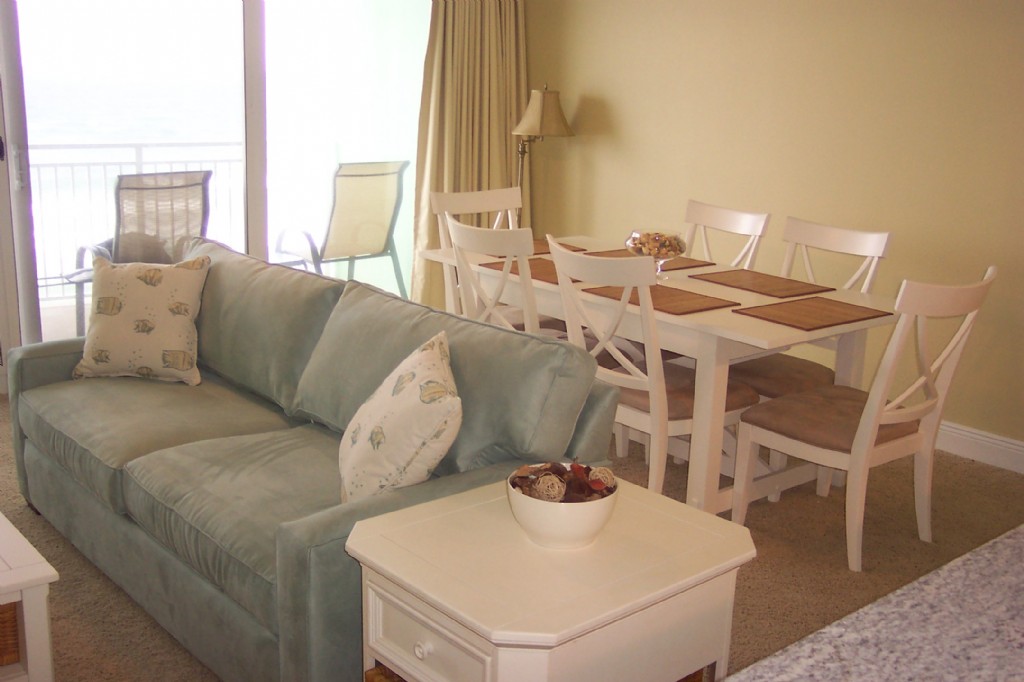 Exclusive! Brand new in 2007 - 6th floor condo directly on the Gulf of Mexico in Panama City Beach. This is a 1 bedroom condo with 2 baths that sleeps 6 (king, 2 bunks, pullout couch.) Professionally decorated in 2007 with beach/cottage decor!