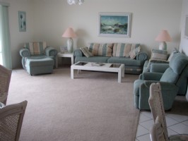 Description of the Indian Shores vacation condo l Life is a Beach... or it can be if you're in our beautiful spacious condo!!! Remodeled with carpet and furniture. Living Room is large with comfortable seating including sofa, love seat, chair w