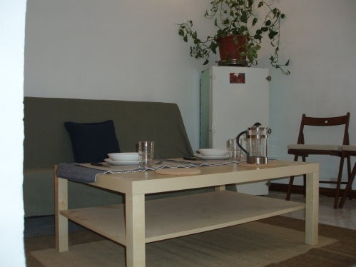 Flat description : 1 double bed, 1 double sofa-bed, full equiped kitchen, complete bathroom with shower, fan/heating, washing machine, sunny balcony on a quiet and nice street and television set. See pictures. Great location !!!