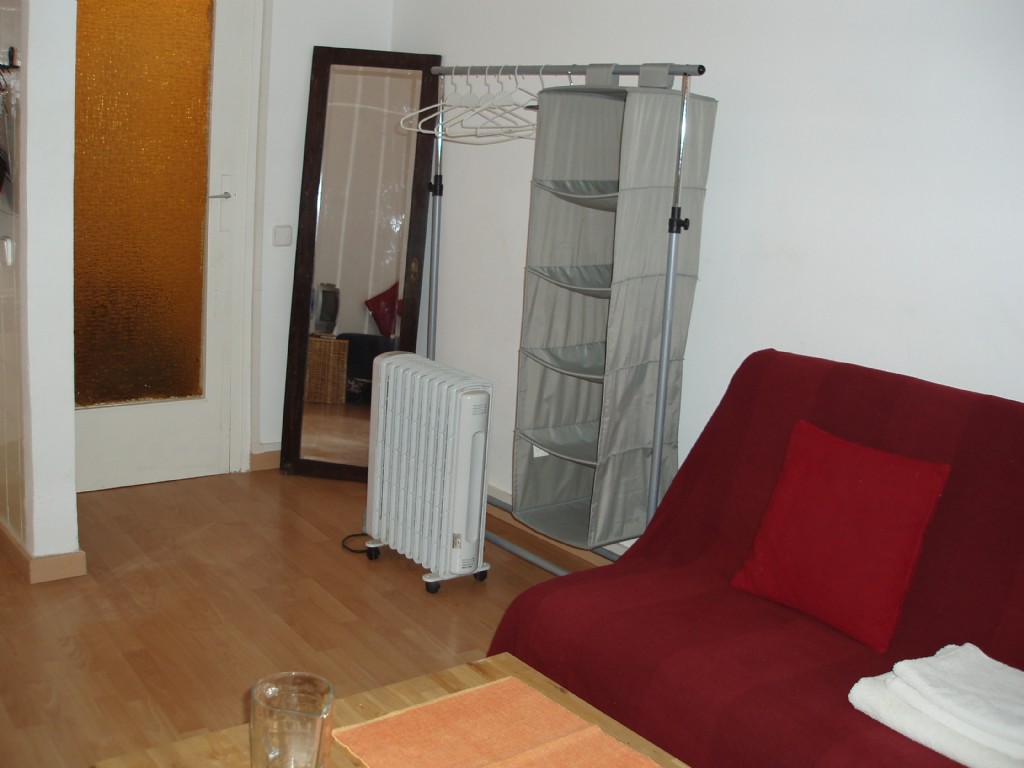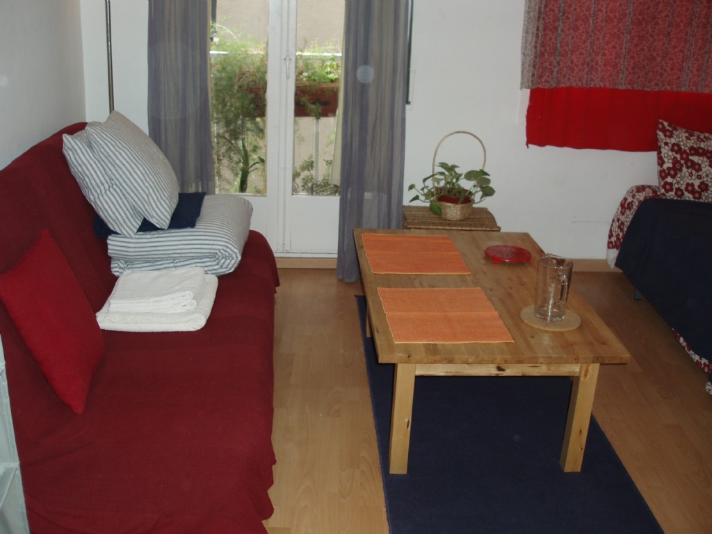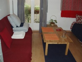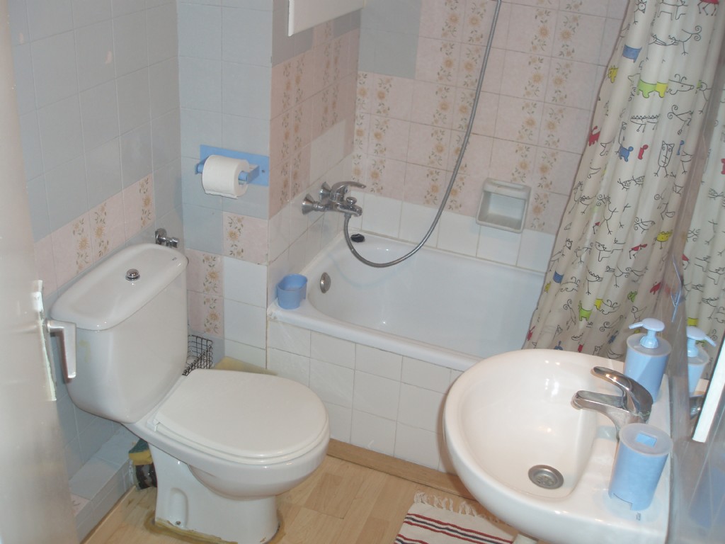 Flat description : 1 double bed, 1 double sofa-bed, full equiped kitchen, complete bathroom with bathtub, fan/heating, television set. See pictures (5).