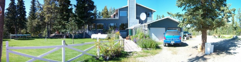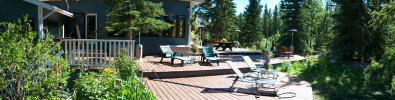 Large beautiful heritage style home located on 60 private acres 15 minutes from the downtown core. Four charmingly appointed bedrooms with private bathrooms and heated towel racks. Full house privileges. Private library, big screen television, jacuzzi, sauna and spacious outdoor living on 2000 sq ft deck surrounded by forest and extensive flower gardens. Private walking trails. Traditional barn with horses. Livestock boarding. Pets welcome. Conveniently located to Takhini Hotsprings and Yukon Wildlife Preserve.