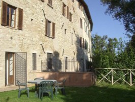 Beautifully restored one bedroom furnished apartment in the ancient "Castello di Montefrondoso", part of which dates to the 11th Century. The castle is set in 8 hectares of parkland, with excellent views over the surrounding Umbrian countryside, within walking distance of the hamlet of Solomeo, where there are a small grocery’s shop and a bar, and a short distance from Perugia. Essential services, and main road connections to the major Umbrian and Tuscan cultural centres, are all close at hand.
