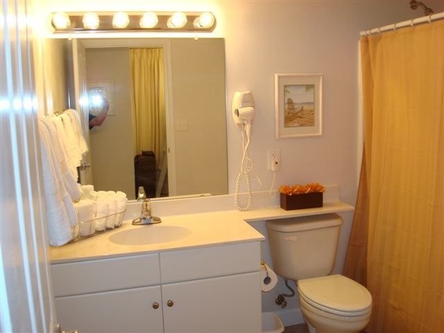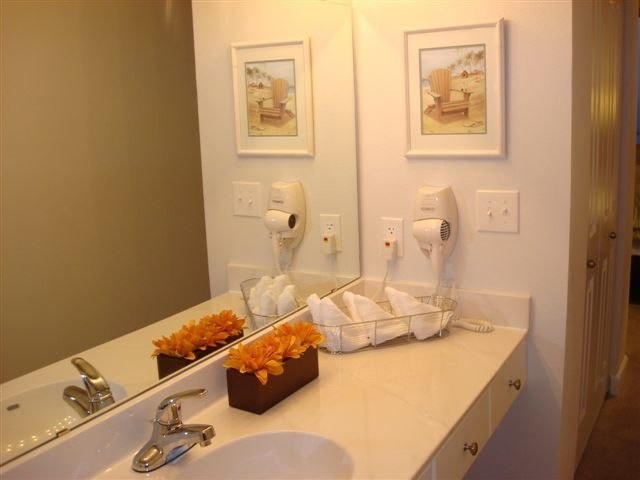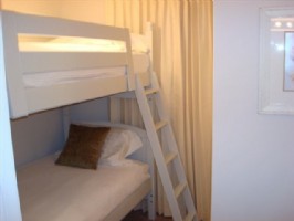 There is 1 full bedroom and one bunk with 2 private baths. The Master Bedroom has a King-Size Bed. The Master offers Egyptian Cotton Sheets, 37 inch Flat LCD TV and DVD player. The bunk beds are each twin size. Both bathrooms are marble. Both bathrooms house a combination tub/shower with Wall-Mounted Hair Dryers.