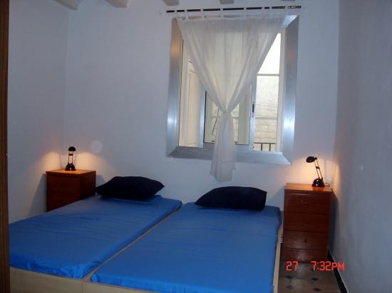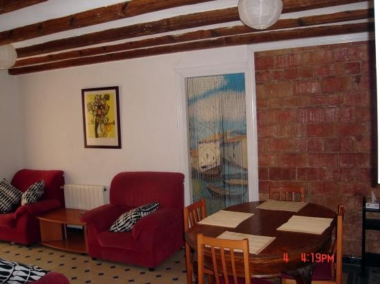 A very nicely furnished apartment on the fourth floor without lift (as most of the buildings in this part of barcelona) Three big bedrooms with two beds each. Two of the rooms have balcons on the side of the street and the other has a big window opening in a huge interior courtyard with sun light almost through-out the day time.