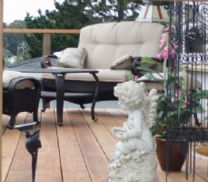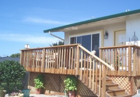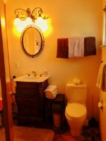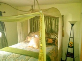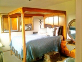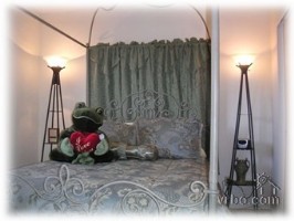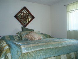 The master bedroom has Queen bed and a single sofa bed. There is a Santa Cruz view from the second bedroom with a tasteful queen canopy bed and the third bedroom has a king bed that breaks down into two twins if necessary.