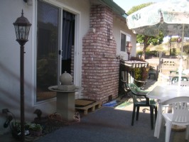A large backyard with ocean views and a giant outdoor fireplace for relaxing. There is plenty of room to relax with family and friends or for just the two of you in a romantic get-a-way.