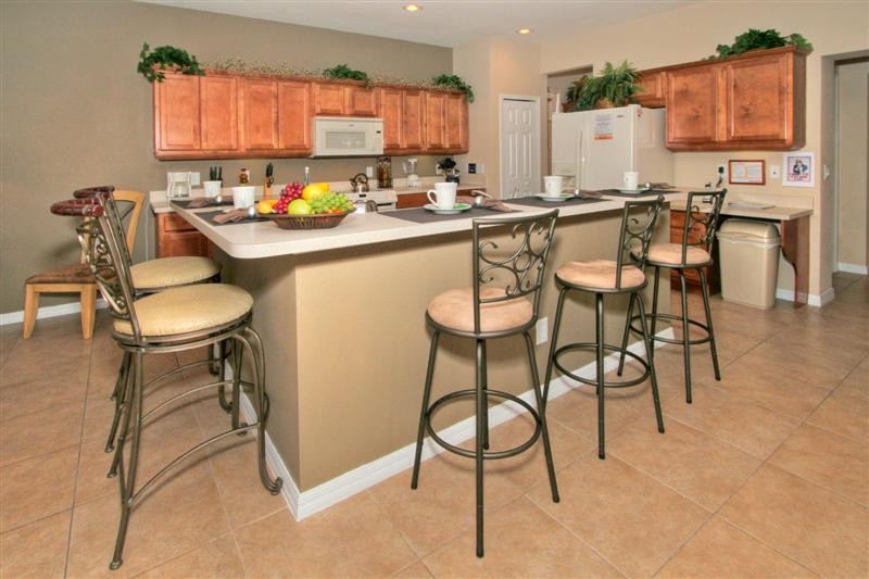 A dinning area with its extended seating area and bar stools allows you all to dine together regardless of the size of your party.