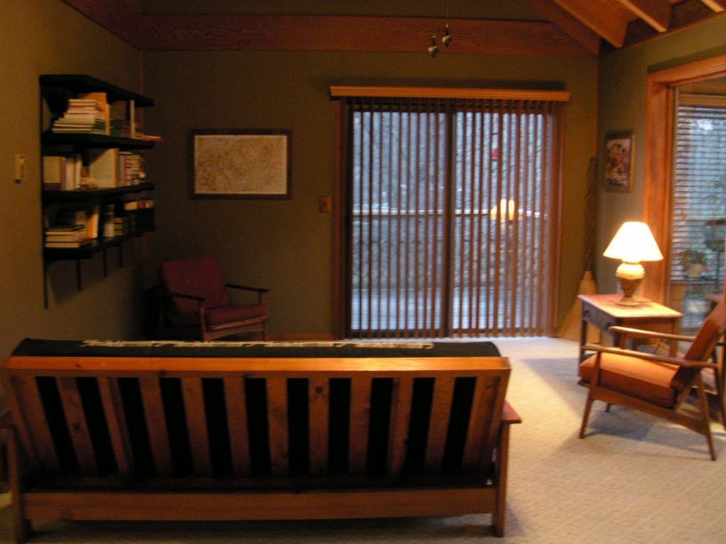 Getting in touch with nature is easy at Sweet Dreams, where you can spend time outdoors year-round. Enjoy views of Mount Pisgah while toasting marshmallows over the fire. Or, cool off in the creek after battling it out at badminton. Imagine dining at sunset on the spacious deck, sitting peacefully by the fountain, or pitching a tent in the backyard. This lovely property also features an herb garden, an abundant supply of blackberries, raspberries, grapes and even figs.