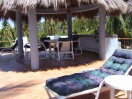 Large covered terrace and sunning terrace, palm-roofed palapa on the upper deck with BBQ grill and hammocks