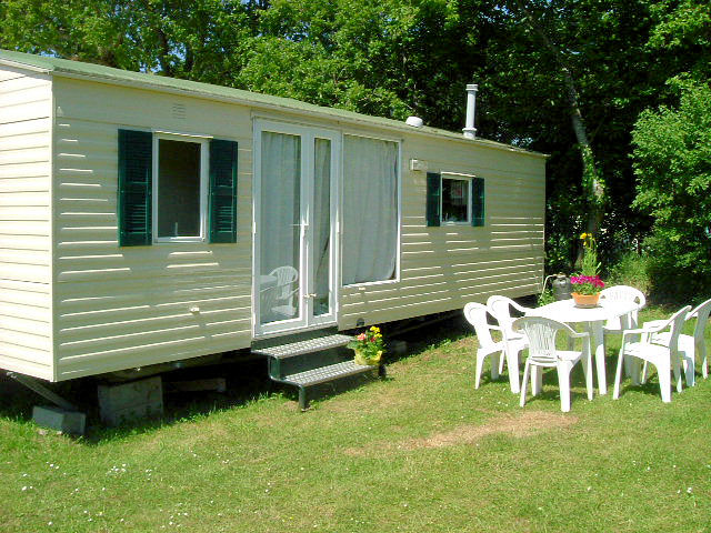 A spacious Willerby Cottage mobile home which comfortably sleeps 6. It is situated on a 3-star woodland campsite at Camping du Quinquis on the coastline at Le Pouldu. There are:- 2 bedrooms (1 double and 1 twin) Lounge/dinette area which conver