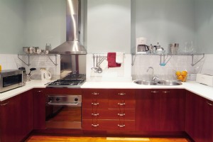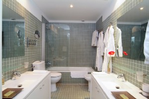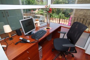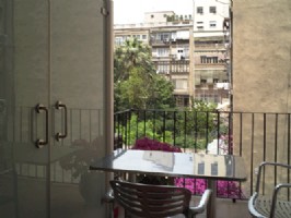 The two bedrooms are located on the side facing Calle Provenza. The original wooden window frames have been conserved, but the original glass was changed for double glazing to offer better acoustic and thermal insulation. On the side facing the open interior of the block, with a sunnier aspect, the lounge and dining area are located. Leading out from this, there is terrace overlooking one of the more unusual “Eixample” block interiors with a view to the “Pedrera” and the lush vegetation of the neighbouring gardens below. Part of the terrace has been converted into a studio giving easy incorporation into or seclusion from the lounge.