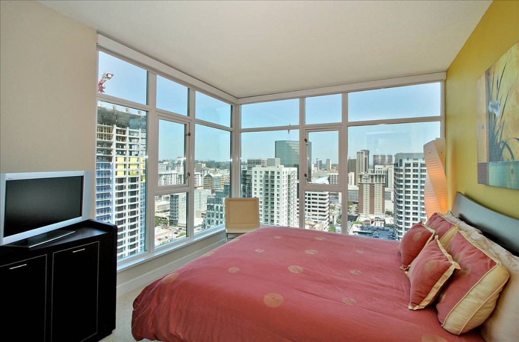 Enjoy breathtaking 180 degree views of Downtown San Diego, Coronado Bridge and the Bay from every room through floor-to-ceiling triple-pane windows.