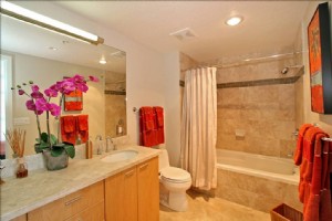 This condo is adorned with beautiful maple hardwood floors, granite countertops, stainless steel appliances, stylish contemporary furnishings, elegant marble bathrooms, a fireplace and luxurious building amenities galore!