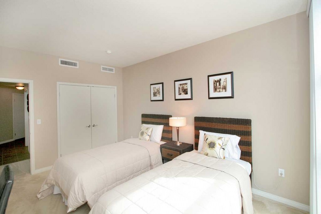 The living room and both bedrooms are equipped with large flat-screen plasma TVs.