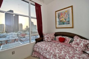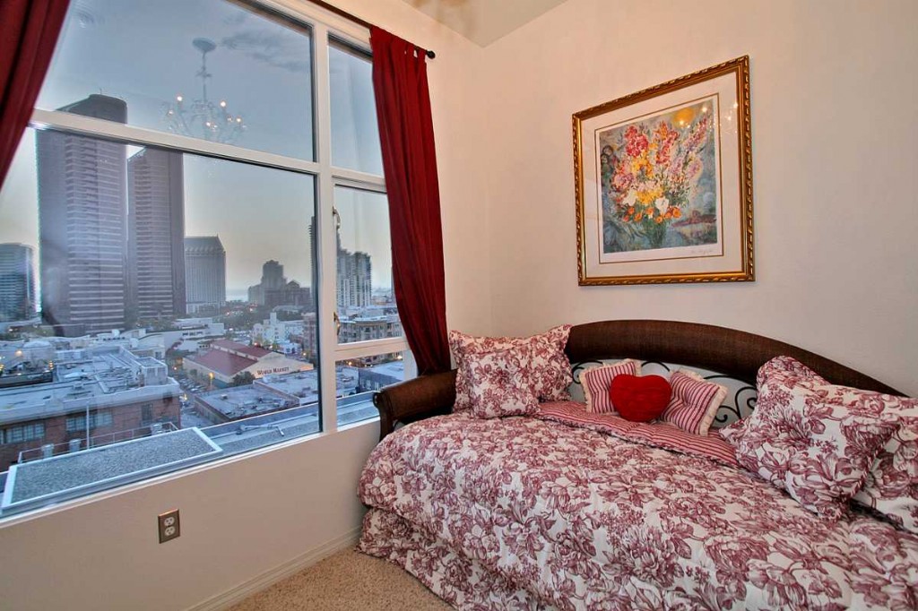 Experience the action and beauty of downtown San Diego right in the heart of the exciting Gaslamp Quarter! This elegant two bedroom one bath condo offers incredible city and ocean views throughout the day and night. Adorned with refined furnishings, upgraded carpet, granite countertops, a gourmet kitchen with breakfast bar and floor to ceiling windows you’ll feel right at home in your private oasis in the city!