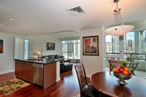This sophisticated condo is beautifully finished with rich cherry hardwood floors, elegant furnishings, granite countertops, gourmet kitchen with stainless steel appliances, fireplace, marble bathrooms and more!