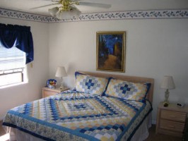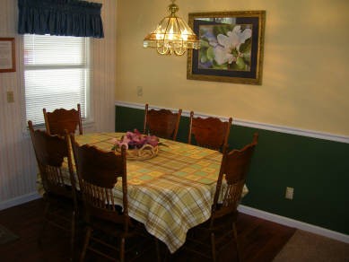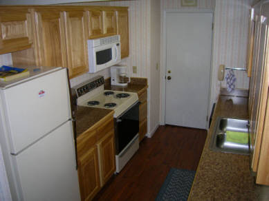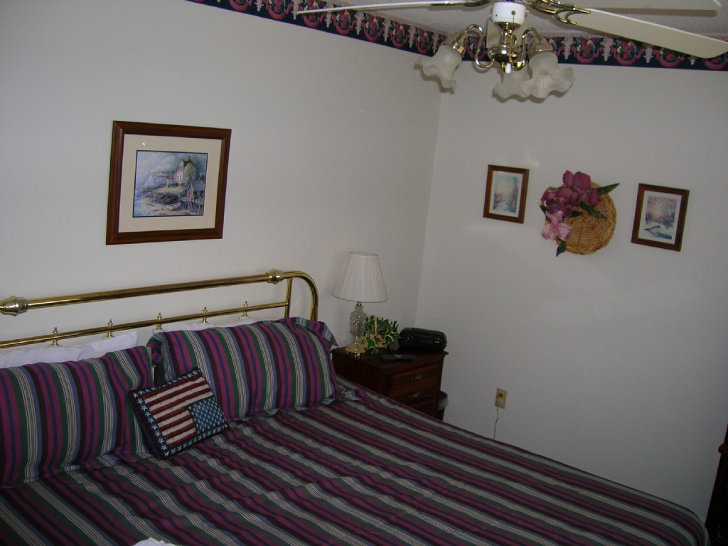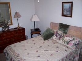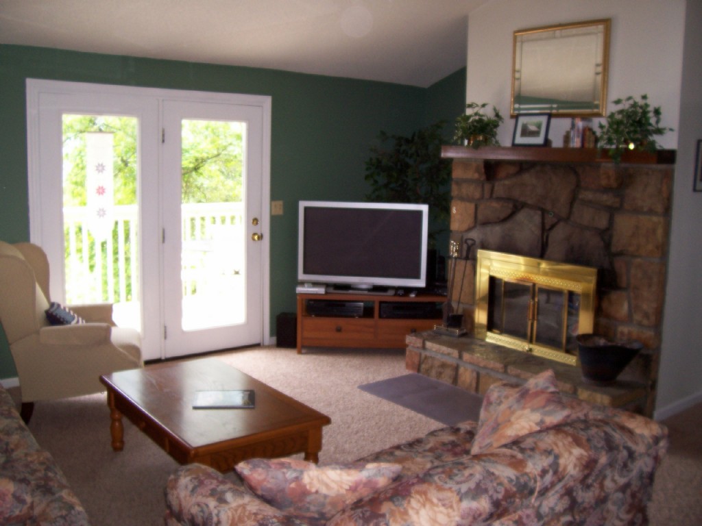 The single floor layout is perfect for seniors or anyone who has trouble with steps. The stone wood-burning fireplace is the centerpiece of the family room. Vaulted ceilings complete the open and airy layout. A 42" plasma TV is sure to please even the finikiest couch potato. A stereo and a DVD player round out the entertainment. There are 2 king beds and 1 queen bed with ceiling fans and TVs in every bedroom.