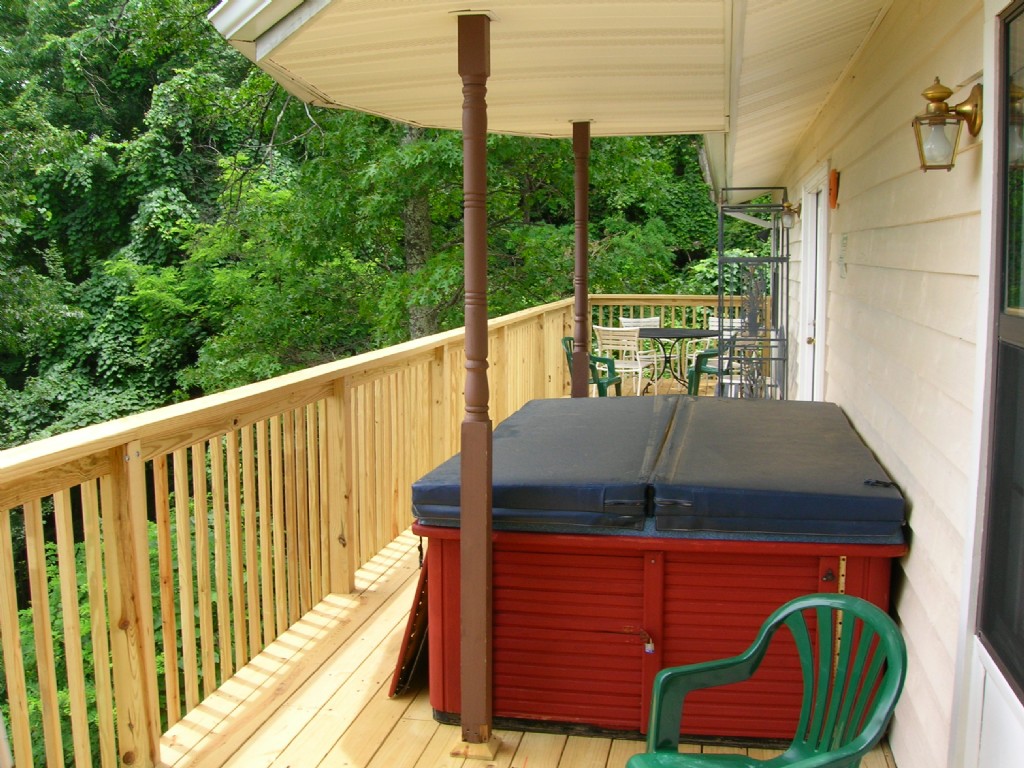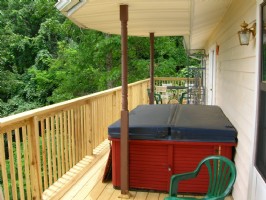 Absolute Heaven - Rental cabin located in the mountains of Gatlinburg, TN on Ski View Drive. This 3 bedroom 2 bath chalet is a 10-minute drive from downtown Gatlinburg featuring all the amenities needed to enjoy a comfortable stay! Nestled high atop Gatlinburg's Chalet Village at the edge of the Smoky Mountain National Park this completely remodeled home offers amazing views of Mt. LeConte, Ober Gatlinburg, the aerial tram, ski slopes and more. 44 foot long deck spans the entire rear of the property and includes a covered hot tub. Sit in the private covered hot tub and enjoy the scenic view and serenity of the mountains as far as the eye can see.